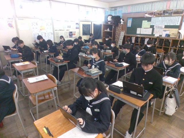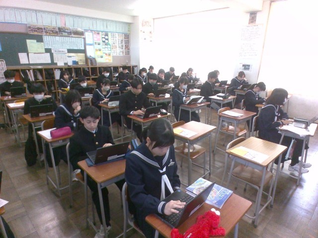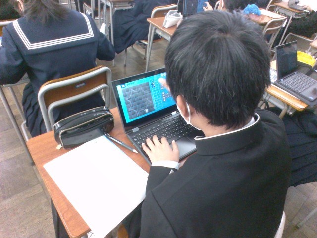 技術・家庭科(技術分野)では、プログラミングを学習しています。学習に慣れてきたのか、難しい課題に挑戦する生徒もいました。