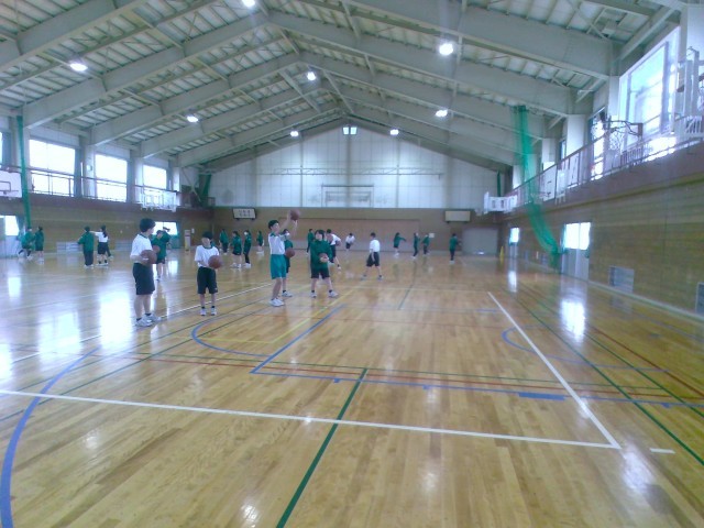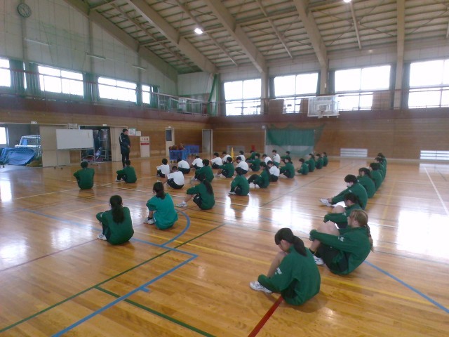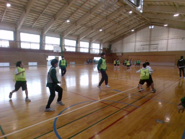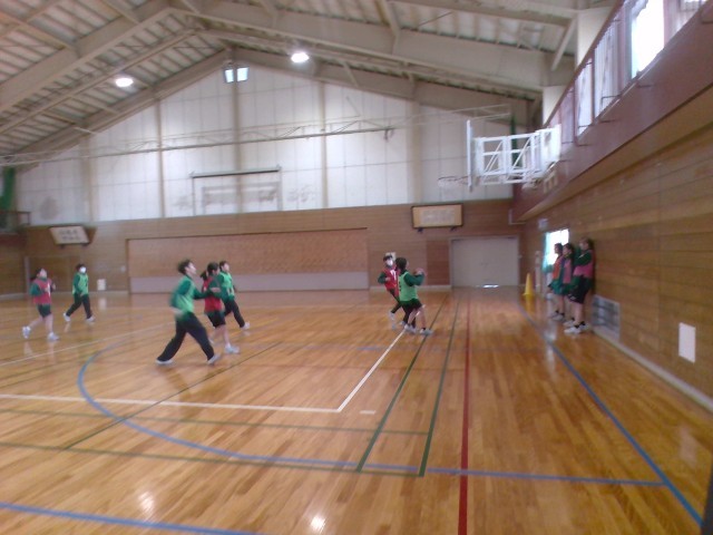 保健体育ではバスケットボールをしています。ドリブルやパス、シュート等の個人練習をした後、チームに分かれて試合をしました。みんな楽しそうにプレーしていました。