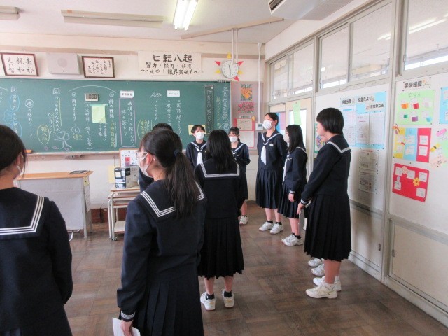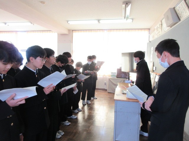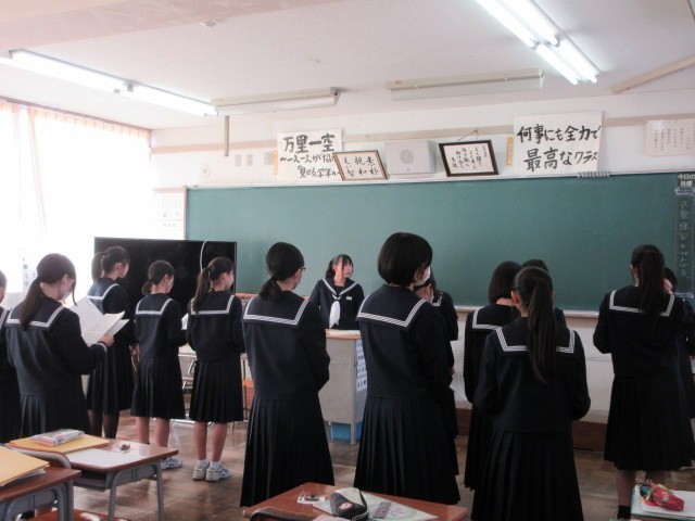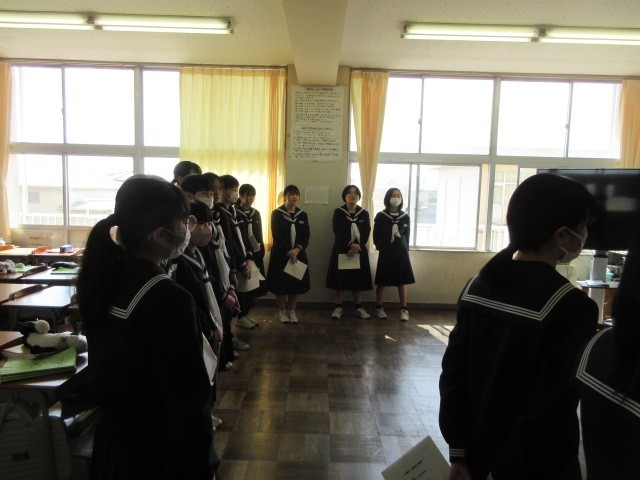 4限に1・2年生は、卒業式の歌練習を行いました。今日は、兄弟級合同で2年生のリーダーが中心になっての練習です。どのクラスからもよい声が聞こえてきました。入試が終わった3年生に届くといいなと思います。