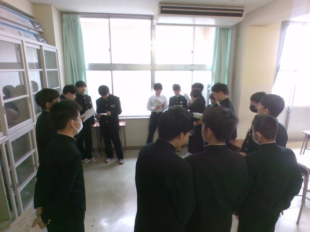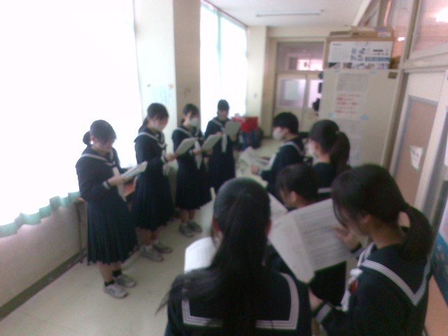 アルトリコーダーの練習の後、卒業式に在校生が歌う「明日につなぐもの」を練習しました。感謝の気持ちが伝わるとよいですね。画像は、パート練習の様子です。
