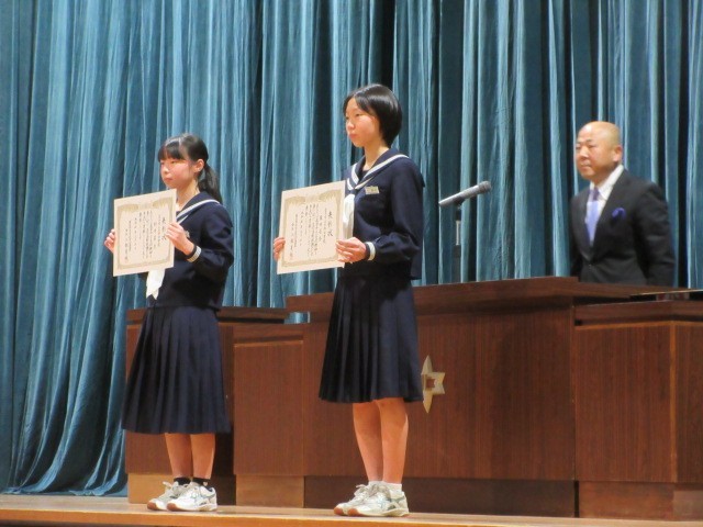 3月12日(水)中文連文化表彰 公開日 2025/03/12 更新日 2025/03/12 北中NEWS 中学校3年間、文化部の活動や中文祭へ作品の出品等で、素晴らしい実績を上げた生徒に中学校文化連盟から中文連文化表彰を受けました。おめでとうございます。。