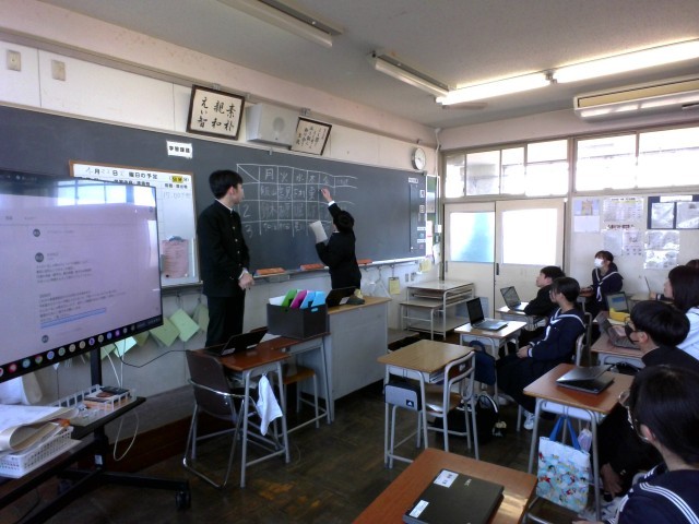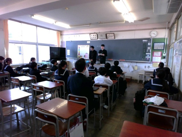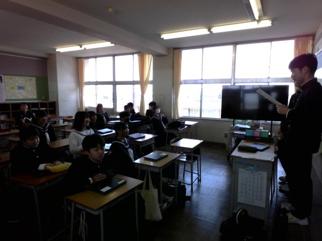 給食委員会では、委員長・副委員長が活動計画案を説明していました。初めて給食委員になる生徒も多く、真剣に聞いていました。