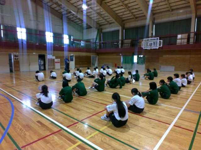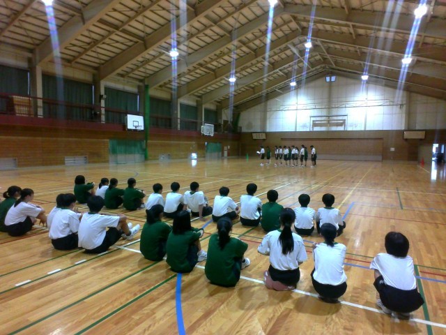2年生の保健体育では、集団行動の発表会がありました。これまで学んだことを披露していました。