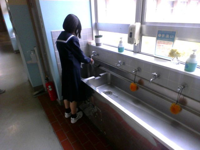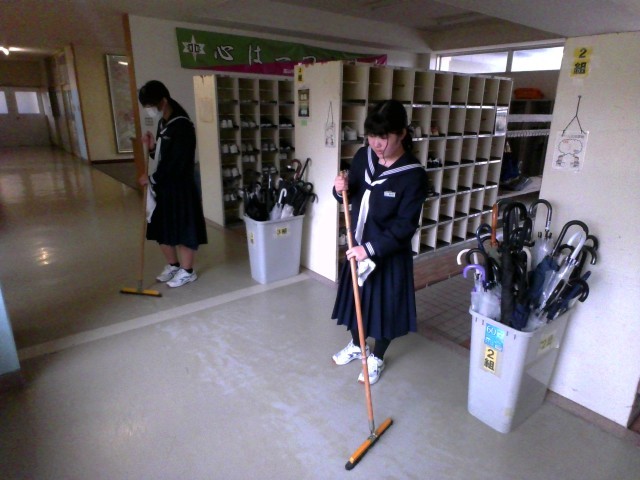 生徒たちは、一生懸命に清掃に取り組んでいました。