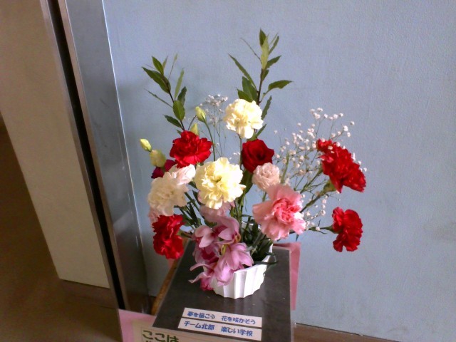 北部中学校の廊下には、いろいろなところに花が飾ってあります。みんなのこころがあたたかくなります。