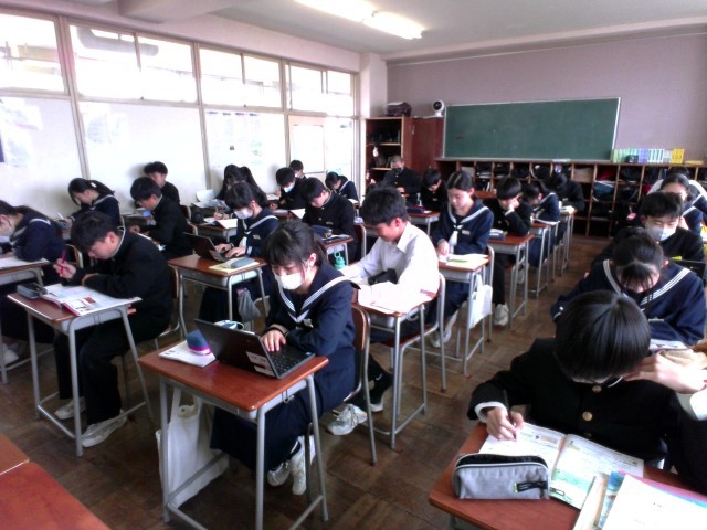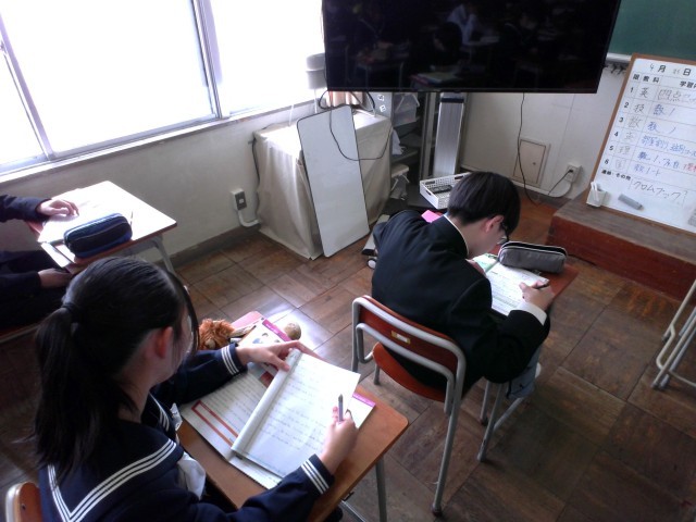 日直が司会進行して、朝の会を進めます。その後、静かに自習や読書をして過ごします。生徒にとって、とてもよい時間になっています。集中して取り組んでいます。