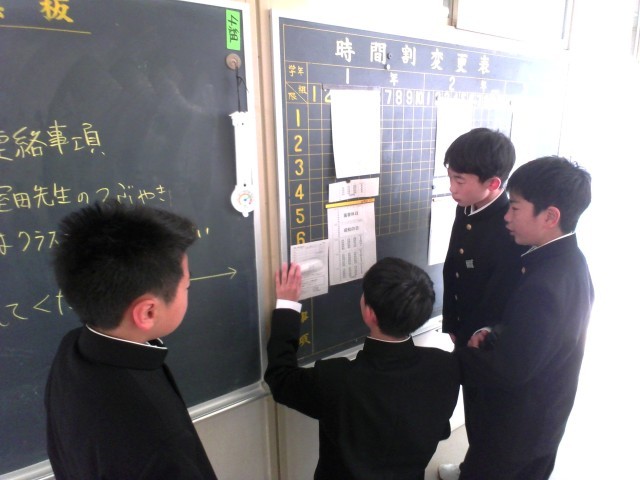 4月30日(水)職員室前廊下の風景 公開日 2025/04/30 更新日 2025/04/30 北中NEWS 朝、職員室前廊下に掲示してある伝達を確認していました。任された仕事を責任をもって果たしている姿が素敵です。