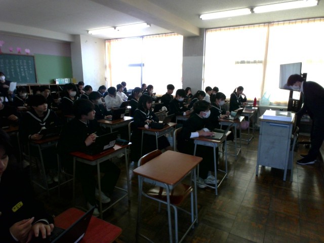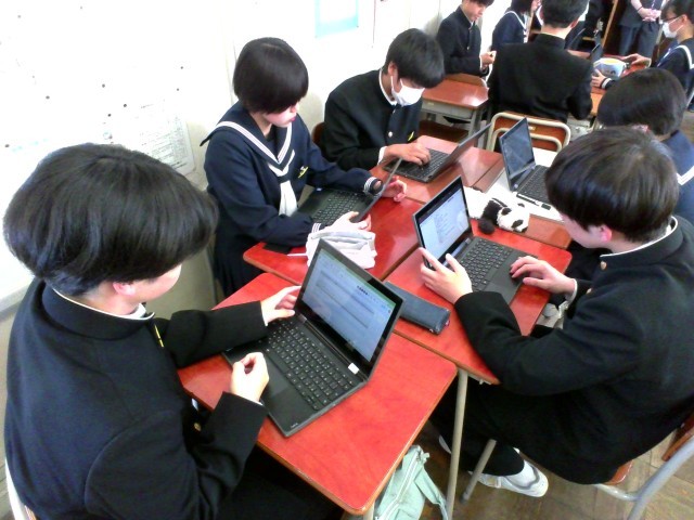 学級目標を考えています。みんなの思いが入った学級目標を作り上げています。