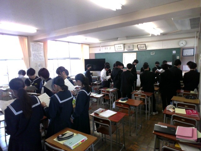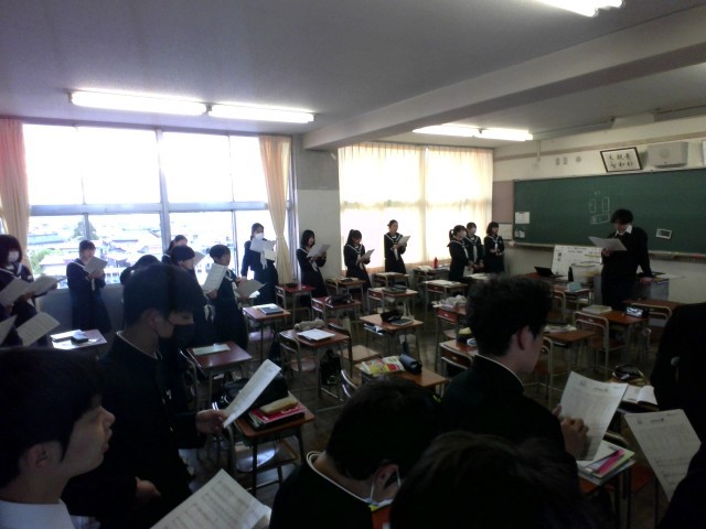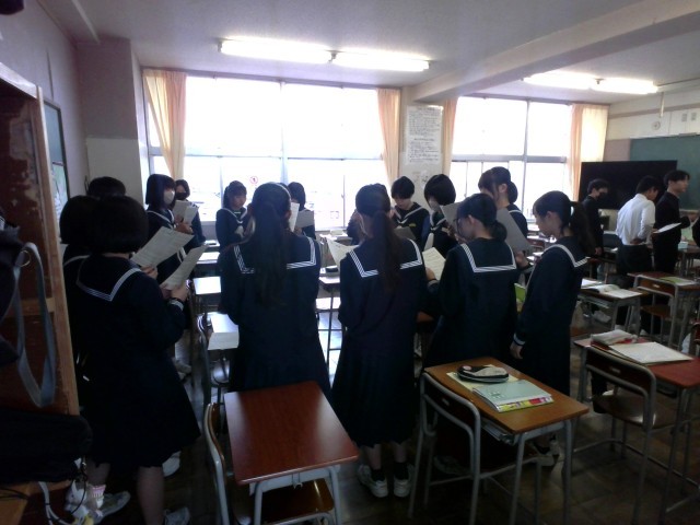 先週から修学旅行で訪れる平和記念公園で歌う「平和の鐘」を練習しています。平和を願う気持ちを歌にのせて歌います。