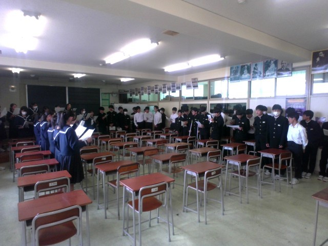 5月7日(水)3年授業風景 公開日 2025/05/07 更新日 2025/05/07 第2学年 平和記念公園で歌う「平和の鐘」の練習をしています。生徒一人一人の平和への願いが、歌とともに、公園に訪れている人々に届きますように。