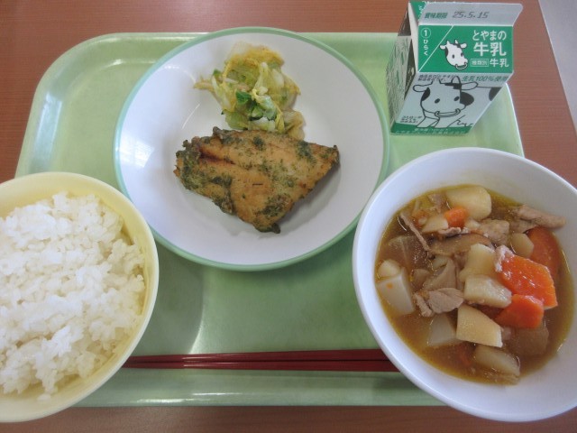 5月8日(木)今日の給食 公開日 2025/05/08 更新日 2025/05/08 給食 今日の献立は、ごはん、牛乳ホキの磯辺揚げしょうがひたし大和煮 です。しょうがひたしがなかなかおいしかったです。生徒にはホキの磯辺揚げが人気です。
