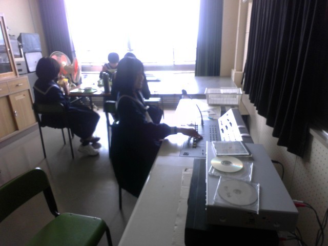 給食時間の放送室の様子です。委員長が委員会からのお知らせをしていました。