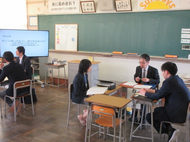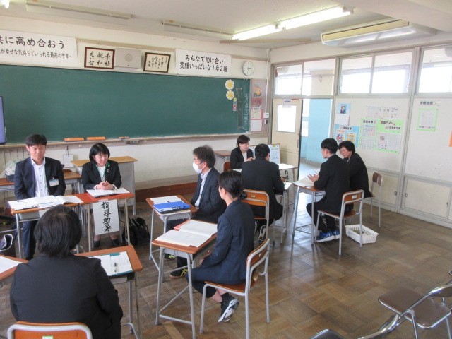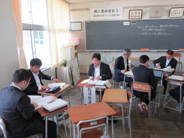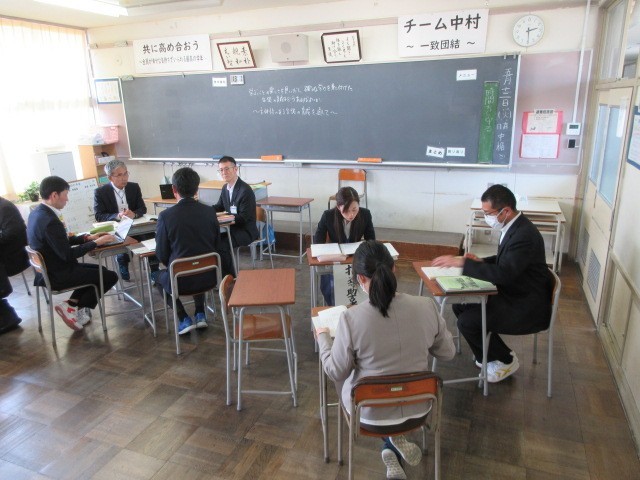 学校訪問研修会の午後の風景です。本校の教員が指導主事等と午前の授業について振り返り、生徒の主体性を高めるための授業づくりに向けて研修を深めました。