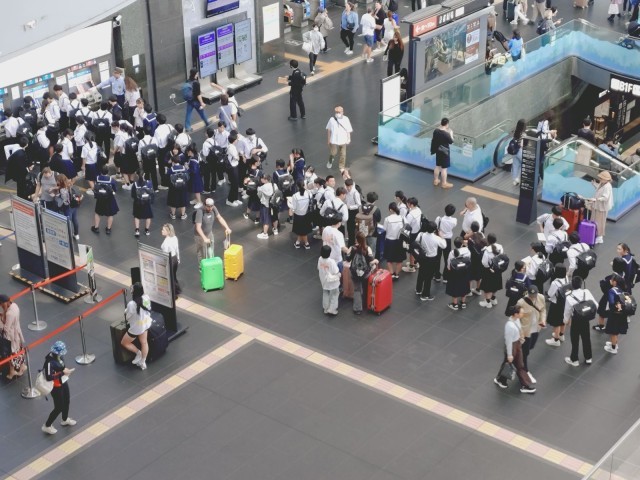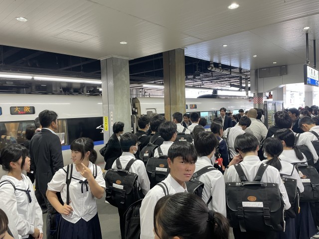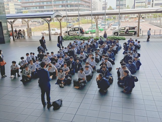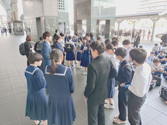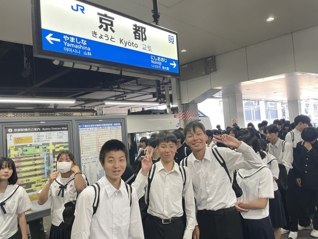 京都に到着しました。班長にスマートフォンを渡し、使い方を確認。いよいよ班別学習に出発です。