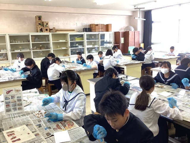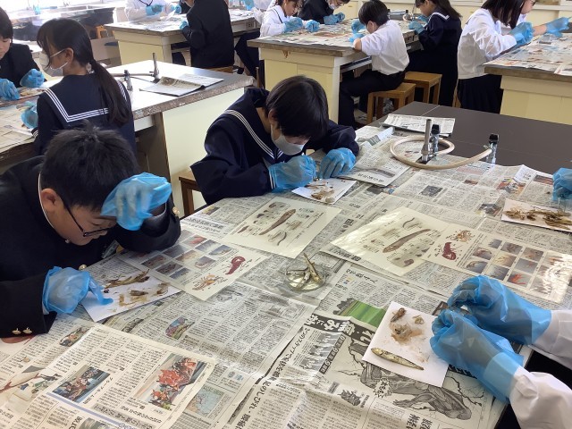 5月14日(水)1年授業風景 公開日 2025/05/14 更新日 2025/05/14 第1学年 1年生の理科の時間です。エビとイワシを観察し、からだのつくりの共通点と相違点を調べました。みんな真剣に取り組んでいました。