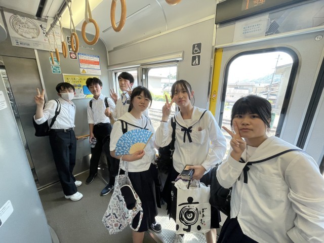 嵐山から京都方面へ向かう電車で、3組2班に出会いました。こちらも暑い中頑張っています。午後1時の気温は28度です。