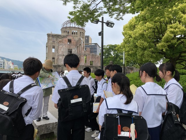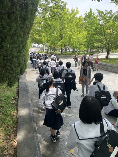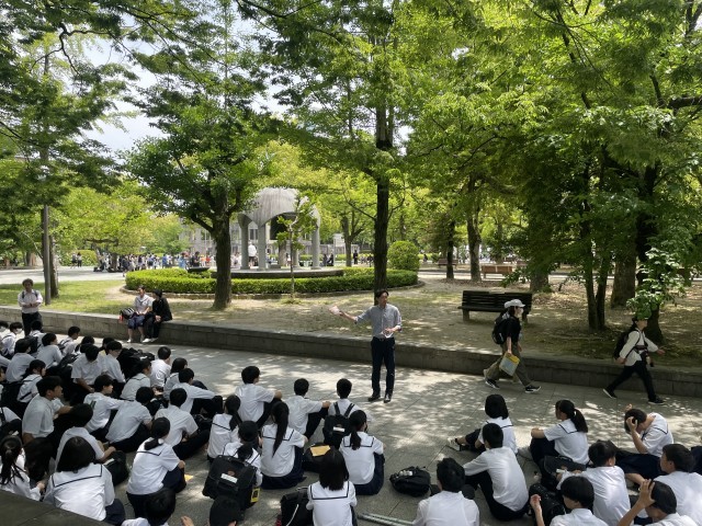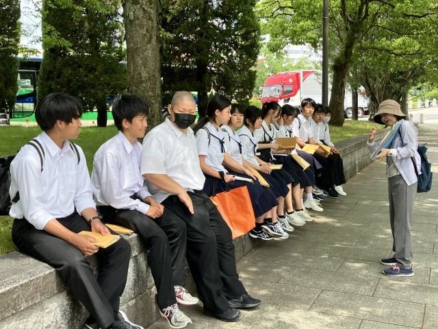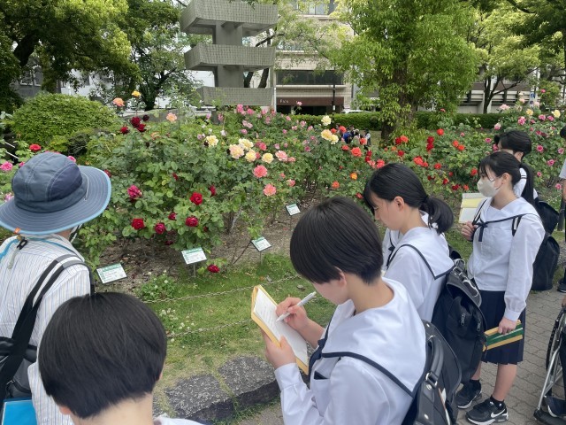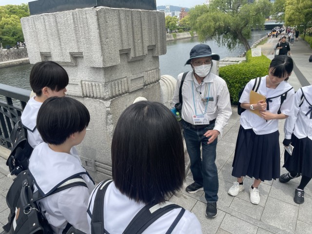 平和公園内をボランティアガイドさんの案内で巡ります。