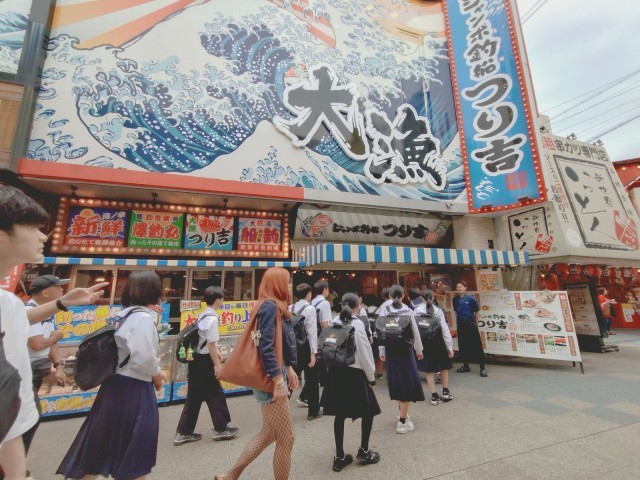 通天閣すぐそばにあるジャンボ釣船つり吉です。大阪らしい串カツなどお腹いっぱい食べました。