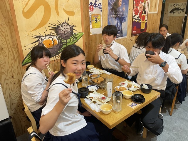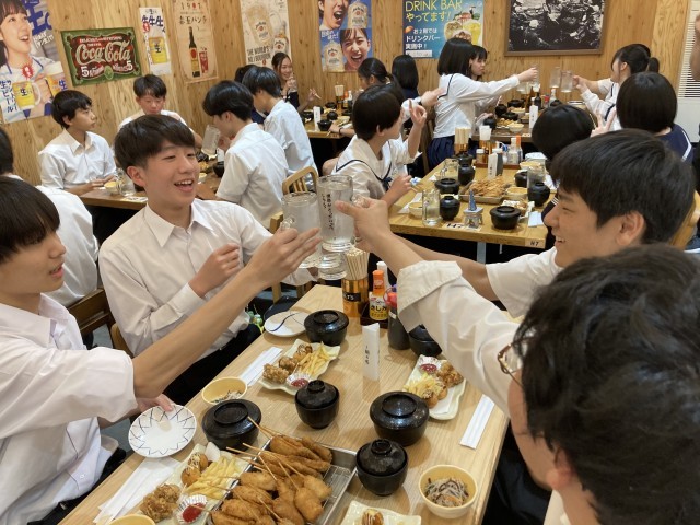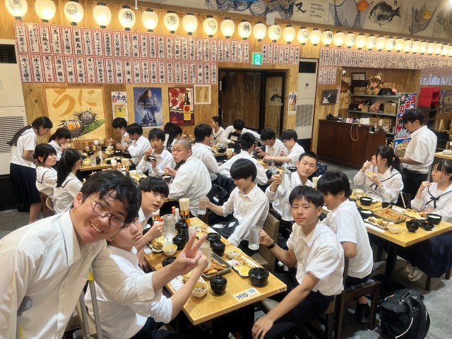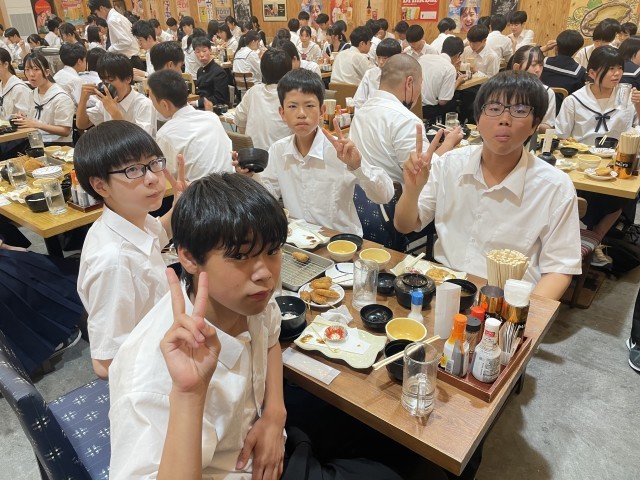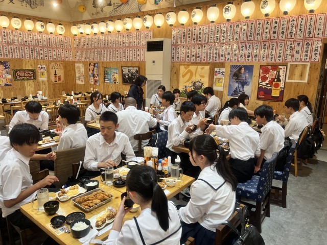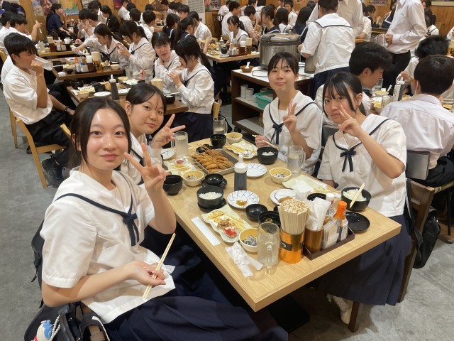 修学旅行中、全員揃って食べる最後の昼食会場です。
