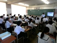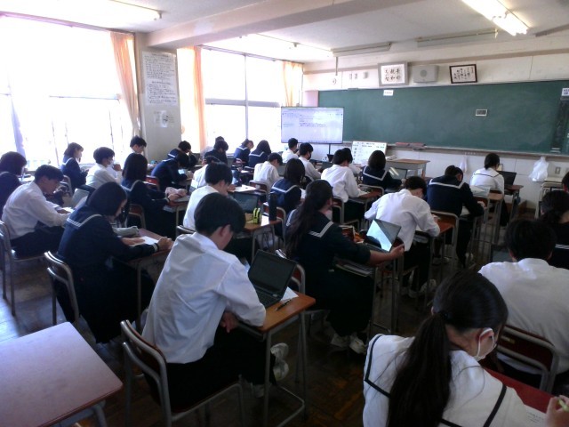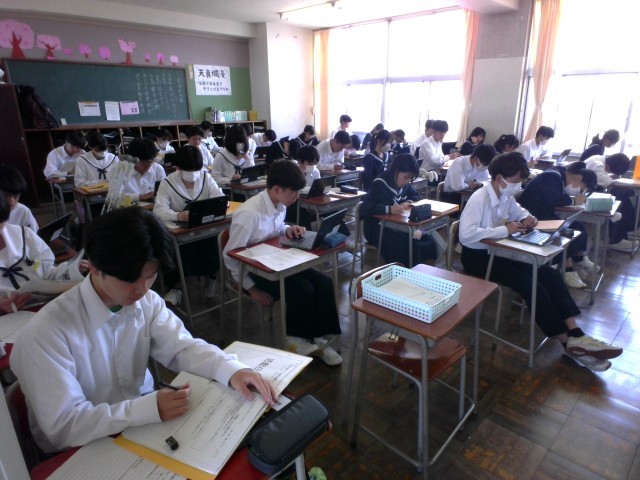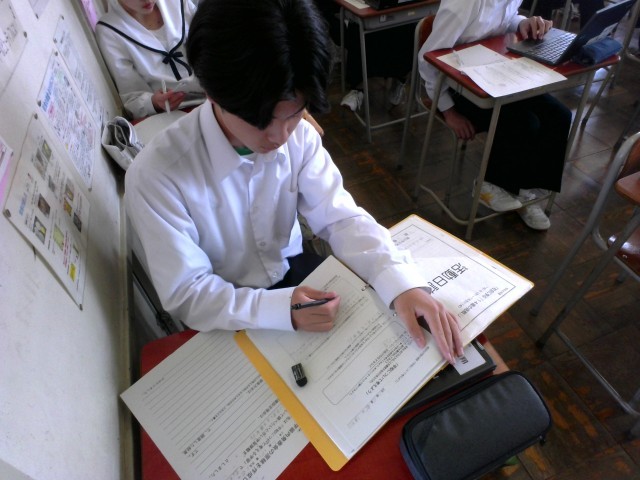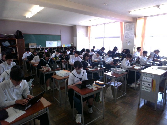 修学旅行の事後学習の様子です。課題解決に向けて、学んできたことをまとめています。