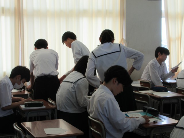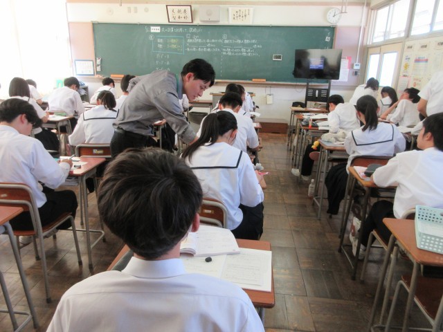 4限、3年生の授業風景です。12時の気温は30度。今日も暑くなりましたが、グラウンドでは元気に走る生徒たちの姿がありました。