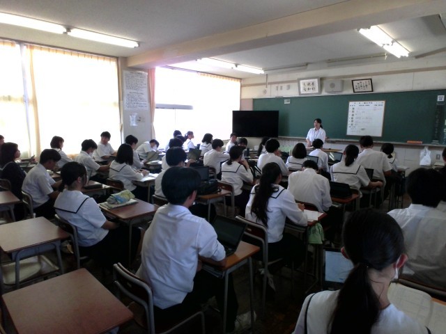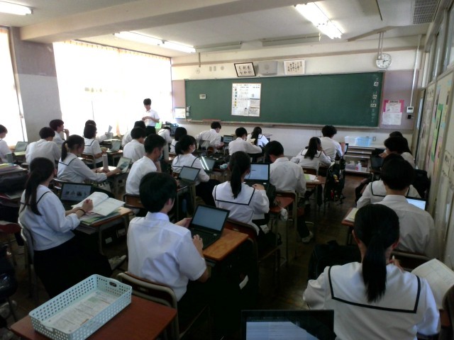 生徒たちは、先生の話を聞いたり、委員会のアンケートをタブレットで答えたりしていました。
