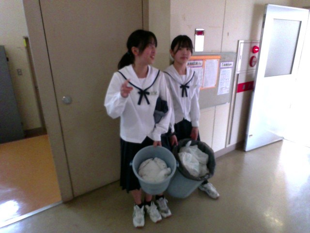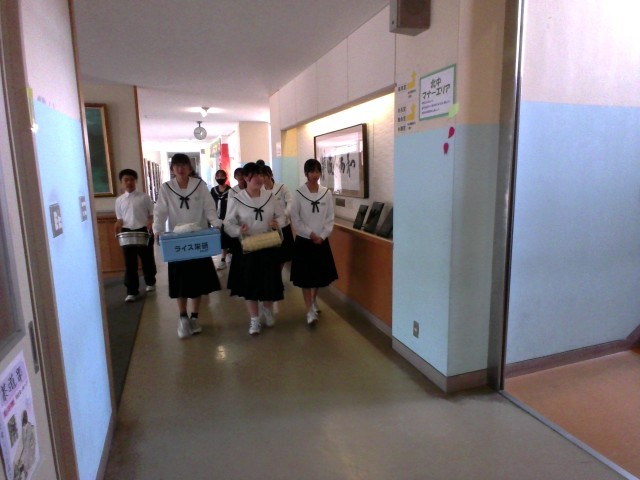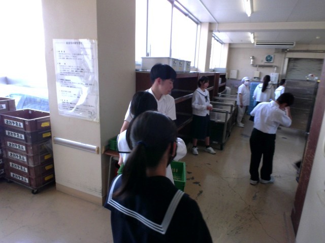 配膳室の様子です。委員が中心になって、当番の誘導をしていました。毎日、頑張っています。