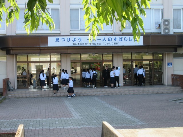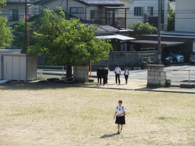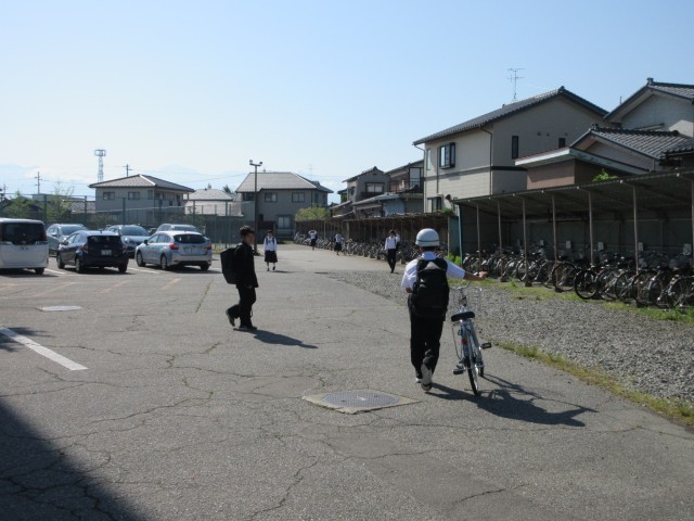 今日も玄関には、たくさんの生徒が集まってあいさつを交わしていました。