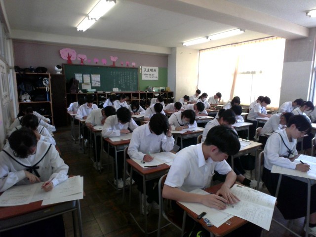 3年生は社会と理科の単元テストを行いました。1学期前半、勉強してきた成果を試しています。