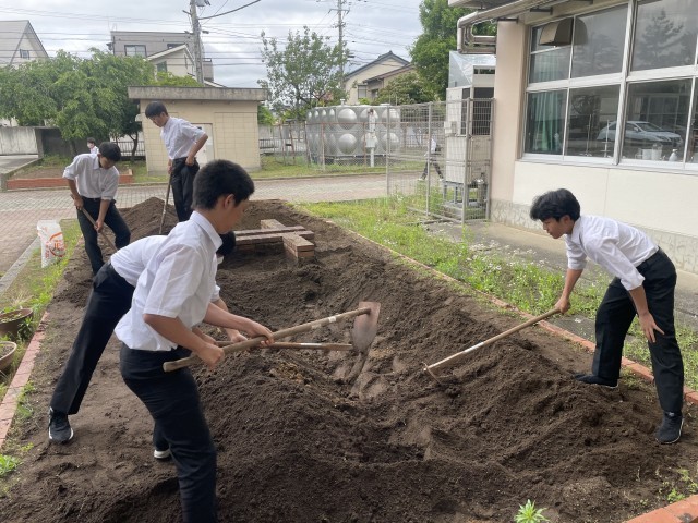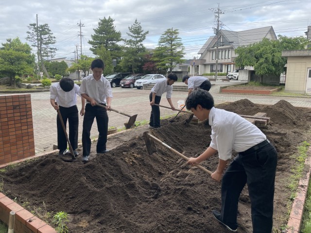 朝、早く登校した生徒たちが花壇の整備をしてくれました。