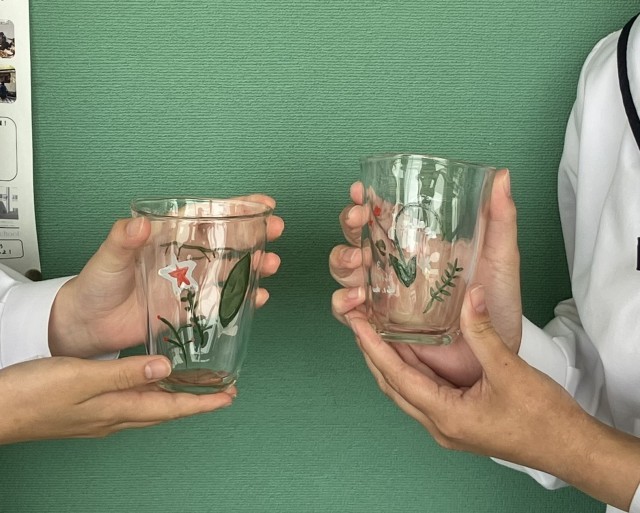 生徒たちのこれからの生き方の参考になる発表になりそうです。4,5枚目の画像は、修学旅行中、生徒が京都で絵付け体験をした際、作成したグラスが届きました。素敵なグラスに仕上がりました。