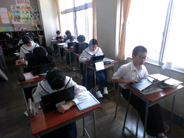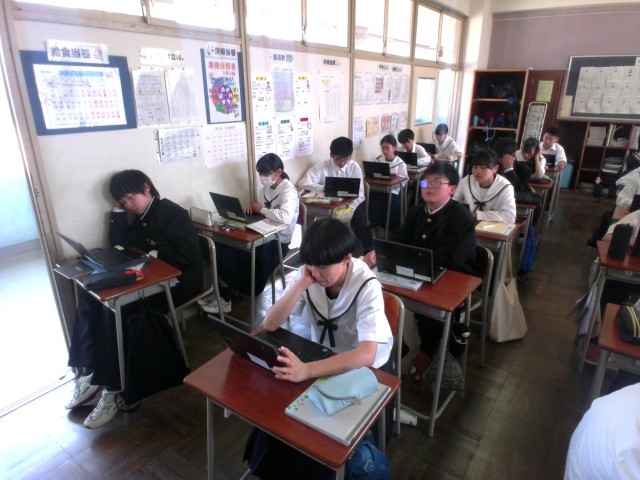 6月9日(月)授業風景 公開日 2025/06/09 更新日 2025/06/09 第1学年 技術・家庭科(技術分野)では、情報について学習しています。今日は、情報通信ネットワークによって、どのようなことが便利になったのかを調べて、まとめました。