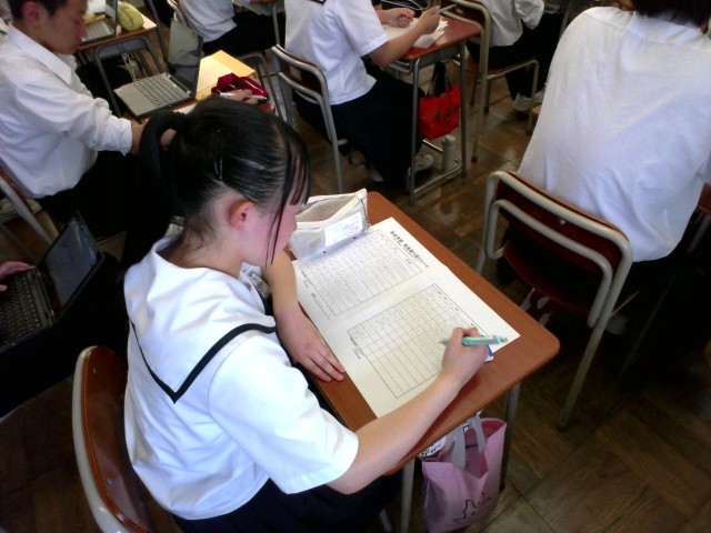 修学旅行の後、取り組んできた平和学習のまとめを発表していました。みんな真剣に耳を傾けていました。