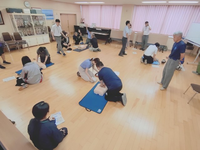 生徒の下校が完了した後、教職員対象の心肺蘇生AED講習会を行いました。