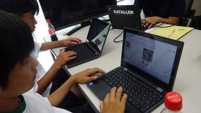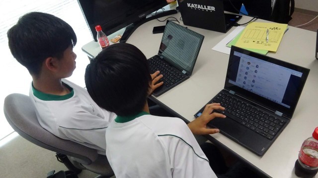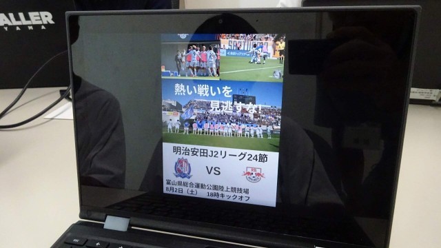 「カターレ富山」では、タブレットを用いて、チラシ作りをしていました。