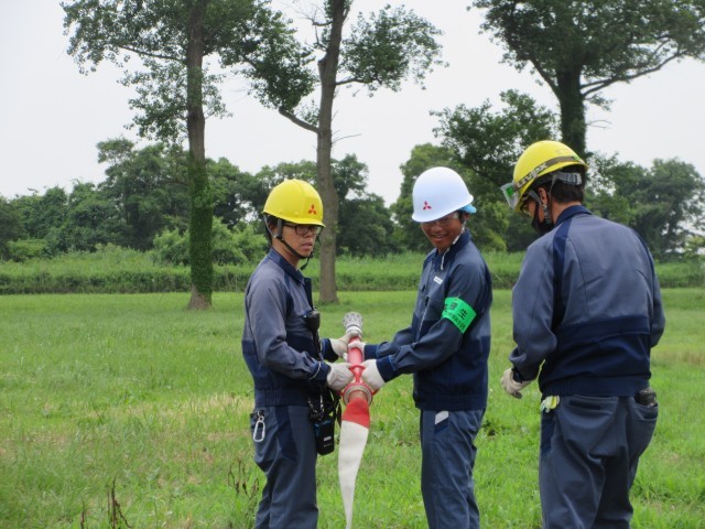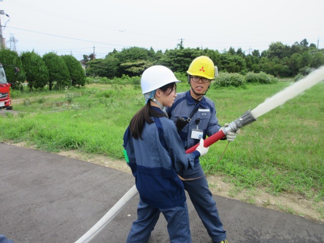 「三菱ケミカル(株) 富山事業所」では、放水や消化器の使用体験をしていました。