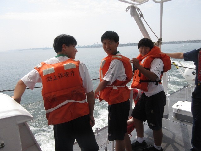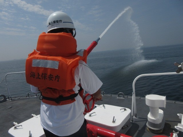 「伏木海上保安部富山分室」では、巡視艇たちかぜに乗船させていただき、船の操縦や放水銃の操作を体験しました。