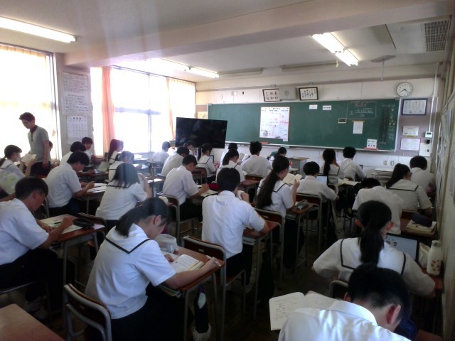 朝活動の様子です。朝は、健康観察や伝達、各自読書や自習をして過ごします。生徒たちは、静かに自分の課題に取り組んでいました。