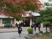 今日から12月。今日も生徒たちが元気に登校しています。もみじの葉もすっかり落ちて...