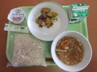 今日の献立は、「学校給食 とやまの日」ソフト麺、牛乳ソフト麵のとやまの五目あんさ...