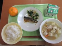 教の献立は、ごはん、牛乳いわしの梅煮、もやしのおひたしごまけんちん、みかん です...