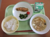 今日の献立は、ごはん、牛乳ふくらぎのかば焼き、とろろ和え、ミニトマト、とやまの野...
