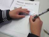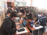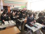 技術・家庭科の授業です。 2つのセンサを使って、プロロボに判断させます。
