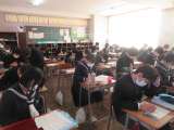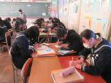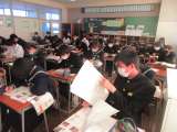 社会の授業です。 まずは、小テストで重要語句を確認します。