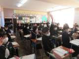 英語の授業です。 thatやwhichを使ってものを紹介する文を学習しまし...