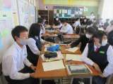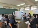 英語の授業です。 ALTのレイ先生に各都道府県のおすすめを紹介します。