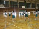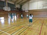 女子は、バレーボールです。 3回つないで相手コートに返します。