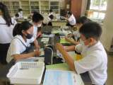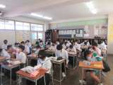 国語の授業です。文法の復習です。 自然に教え合っています。いい雰囲気です!...