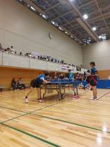 卓球部です。男女とも個人戦に出場し、全力でがんばりました。