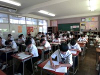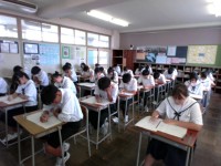 1年生の2限目は理科です。生徒たちは、黙々と問題を解いていました。